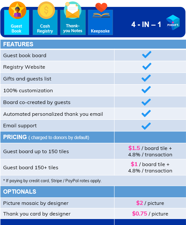 But it's not always easy to ask for money as a gift. At PixGift, we make it easy, visual, and fun to soften the request for a cash gift and pool funds while making your gift-givers feel involved, appreciated and a part of a memory.